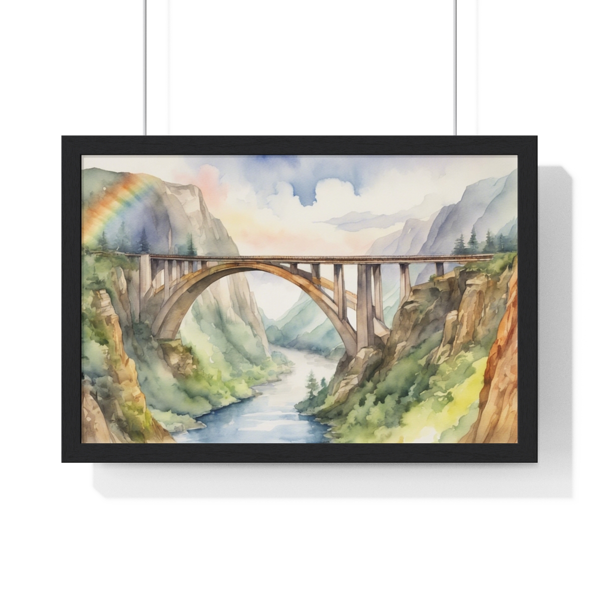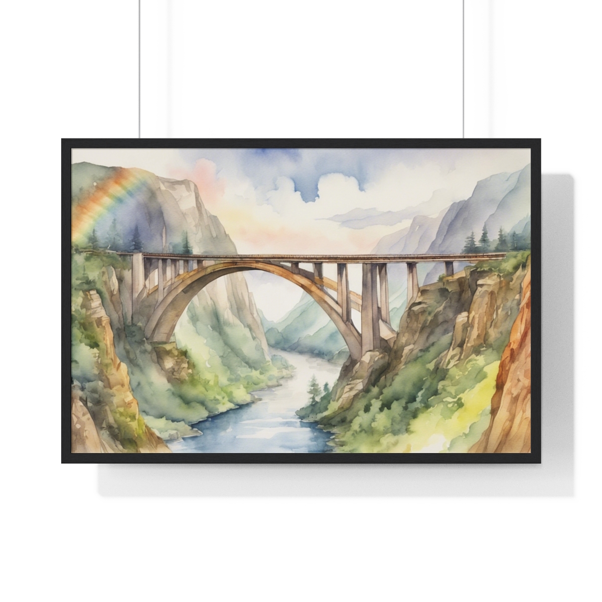 Bridge Connecting Mountains Framed Poster